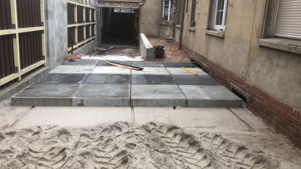 Vom kompletten Hof mit 350kg Platten bis zu 10x20cm Rechteckpflaster.